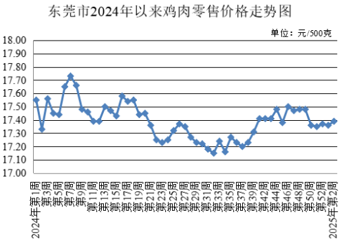 第2周,牛肉農(nóng)貿(mào)市場零售均價(jià)為每500克46.84元,較上周下降0.04%。牛腩農(nóng)貿(mào)市場零售均價(jià)為每500克43.59元,較上周上升0.21%。雞肉農(nóng)貿(mào)市場零售均價(jià)為每500克17.39元,較上周上升0.17%。