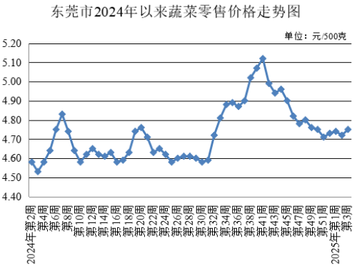 第3周,監(jiān)測的30種蔬菜農貿市場零售均價為每500克4.75元,較上周上升0.64%。其中,葉菜類農貿市場零售均價為每500克4.85元,較上周上升0.21%;非葉菜類農貿市場零售均價為每500克4.67元,較上周上升0.86%。